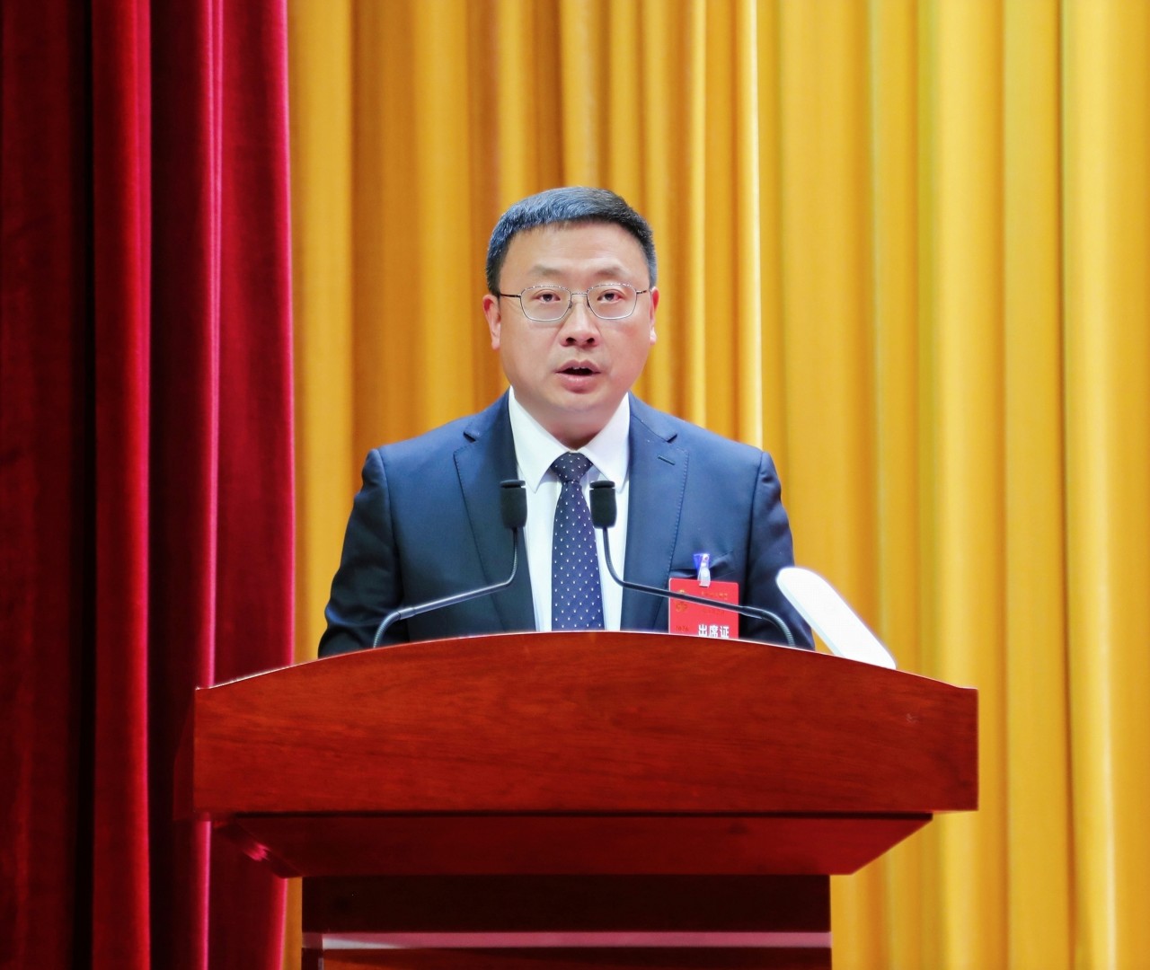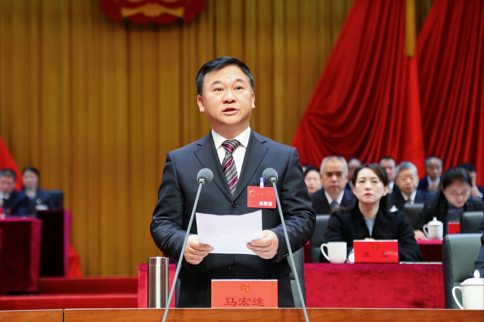 代理区长杨凯代表区人民政府向大会作工作报告。