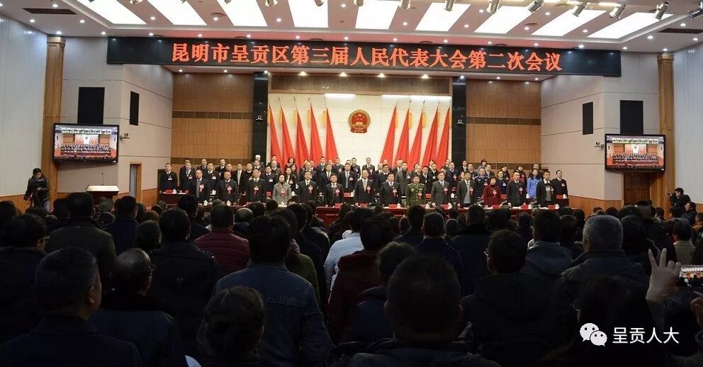 2018年2月8日上午,昆明市呈贡区第三届人民代表大会第二次会议在区人民法院会议厅开幕。来自全区各条战线、各行各业的代表们肩负全区人民的重托,以高度的主人翁责任感和饱满的政治热情,认真履行职责,积极献计献策,奋力推动呈贡新区改革发展,共同谱写新时代呈贡经济社会发展新篇章。