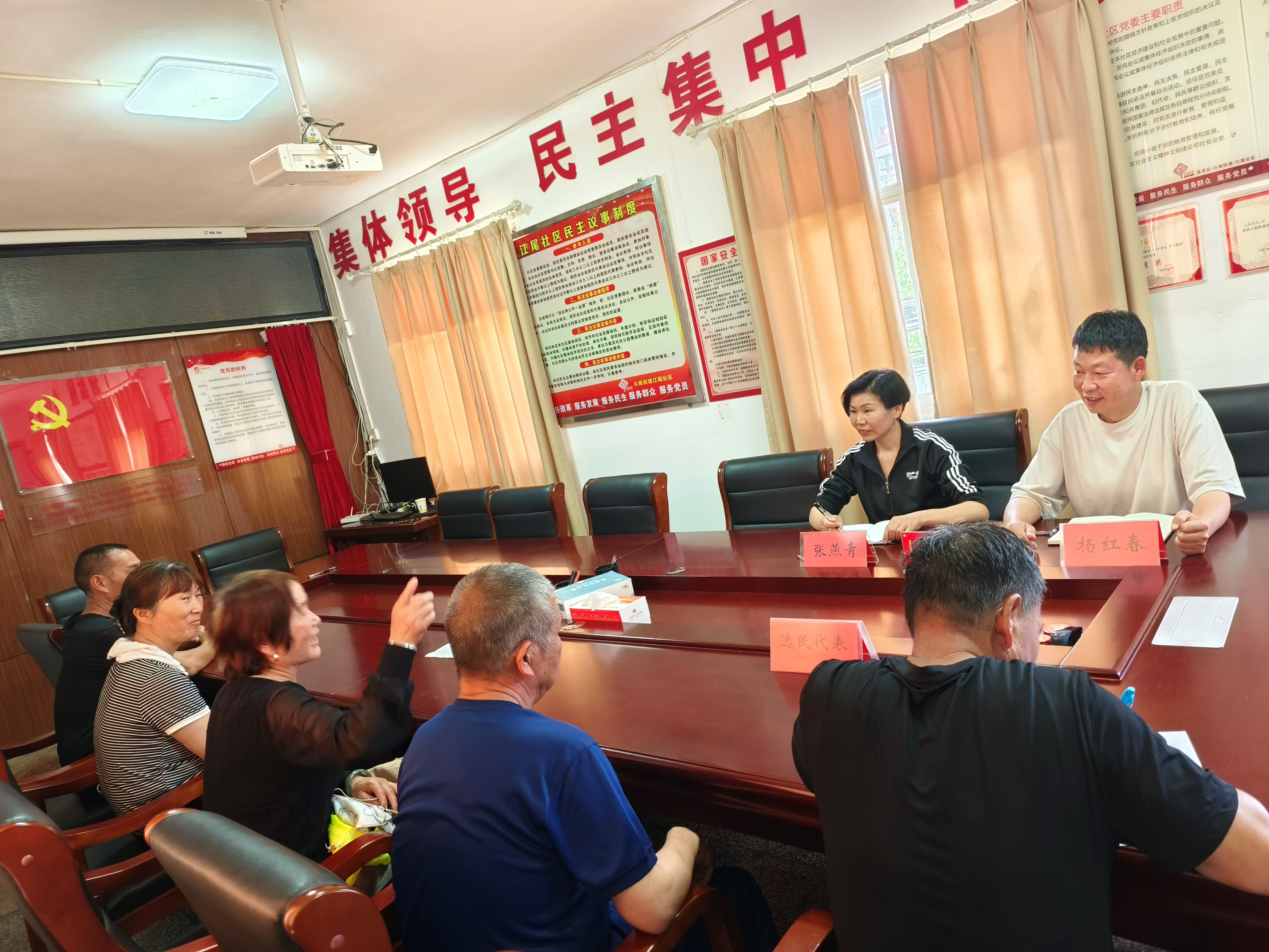 为加强人大代表与选民群众之间的联系,深入了解群众需求,积极回应社区居民关切,6月25日,呈贡区斗南街道人大代表工作站组织开展人大代表进站接待选民群众活动。斗南街道江尾选区杨红春、张燕青两位代表,在江尾社区接待站点与选民群众面对面交流,认真倾听群众的意见和建议。